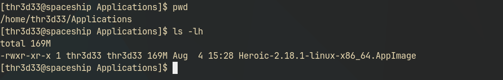 We want to copy our heroic.desktop file to the .local/share/applications directory so that the system can pick up our AppImage’s in their respective GUI application launchers.