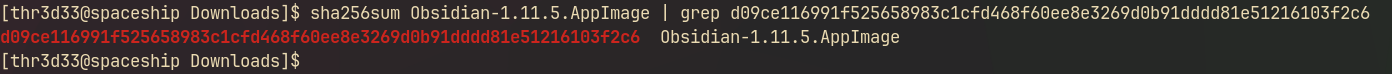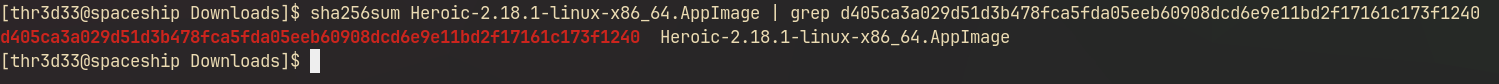 Once we have downloaded our AppImage applications, we want to verify the integrity of the downloads by using the available sha265sum they provide.