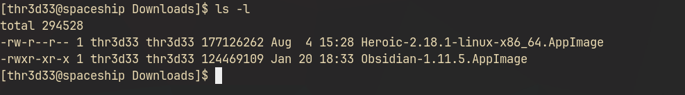 Once our integrity checks are done, we can simply add execution permissions to our AppImage application, using the command chmod:
