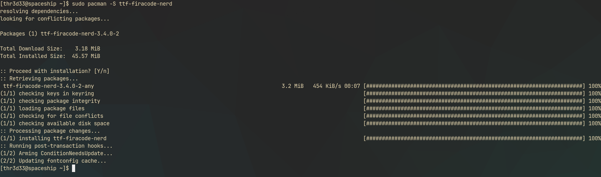 sudo pacman -S ttf-firacode-nerd