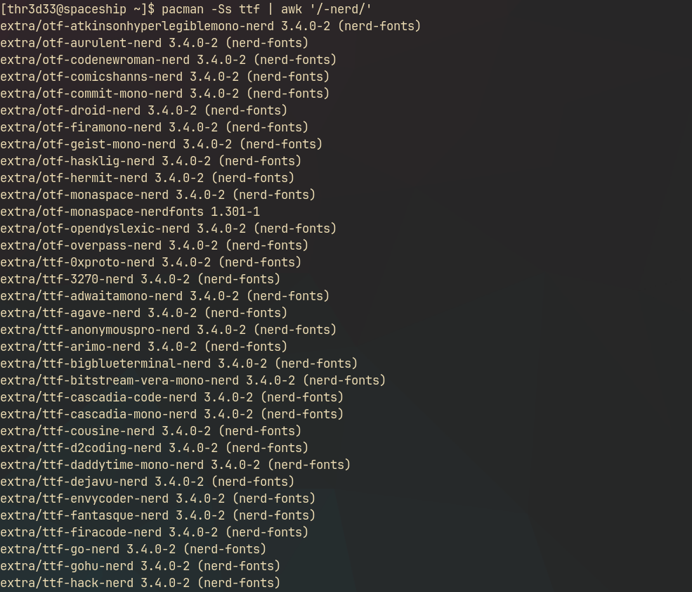 pacman -Ss ttf | awk '/-nerd/'