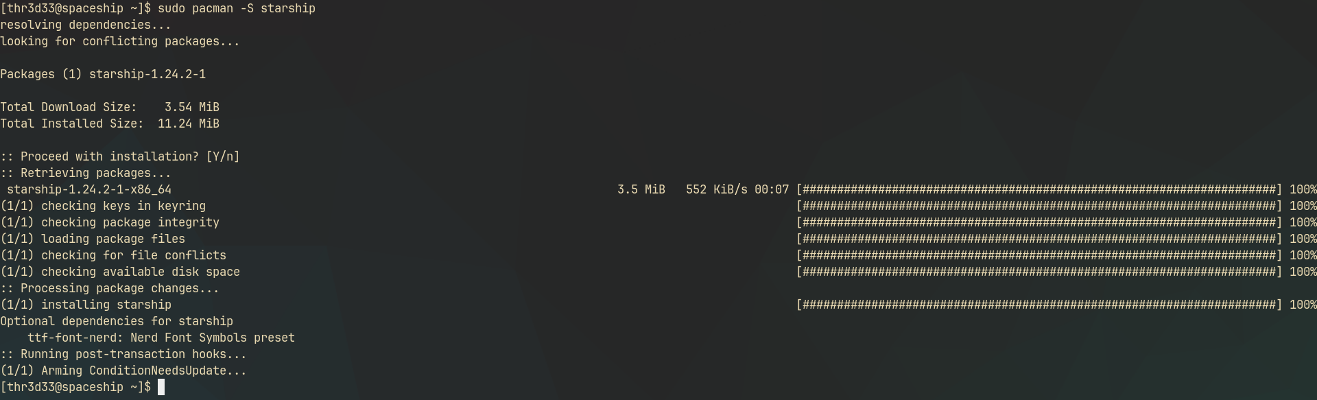 sudo pacman -S starship